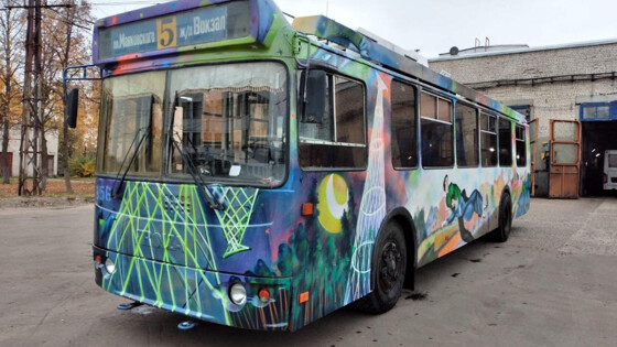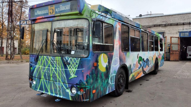 Художник-граффитист Илья Спиченков оформил троллейбус в Дзержинске