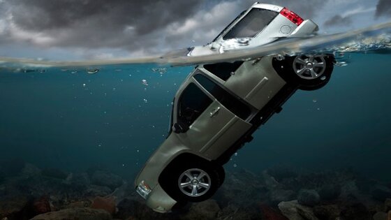 Ежегодно в американском штате Флорида происходит более 4000 случаев падения в воду автомобилей с людьми внутри. Каждый десятый инцидент с летальным исходом. Одна из главных причин гибели людей в тонущей машине в том, что они действуют шаблонно и не учитывают законы физики и математики. Сотрудники кафедры физики Университета Юго-Восточной Луизианы разработали несколько простых правил для таких случаев. Первое и главное, что нужно твердо запомнить: у вас есть примерно минута, чтобы успеть выбраться из машины в промежуток между тем как она коснулась воды и погрузилась под воду полностью. Нельзя сидеть и ждать, пока салон полностью заполнится водой, потому что тогда к весу машины прибавится несколько тонн воды, из-за чего она стремительно уйдет на дно. Уже через пару секунд она будет на глубине в 10 м и более, откуда неподготовленный человек рискует не выплыть. Некоторые люди стремятся перед падением в воду выиграть драгоценные мгновения и заранее отстегивают ремень безопасности, но только получают дополнительные травмы от удара о руль. Лучше оглядеться и взять в руки ударный инструмент, потому что при попадании воды в электрические цепи автоподъемник окна наверняка заклинит, и стекло придется выбивать вручную. Именно через окно и надо покидать автомобиль, потому что в незаполненной водой машине давление на двери извне измеряется тоннами, и вы никогда не откроете ее вручную. Важный момент – орудовать инструментом под водой очень неудобно, поэтому важно разбить окна пока еще вокруг есть воздух. Придется действовать крайне быстро, поскольку когда вода поднимется до уровня открытого окна, она стремительно хлынет внутрь и счет пойдет на секунды. Первыми нужно вытолкнуть наружу подростков, а маленьких детей лучше прижать к себе и выбираться вместе, потому что они не справятся с потоком воды.