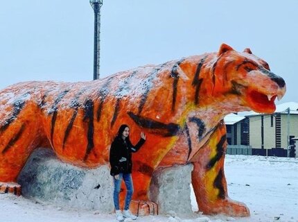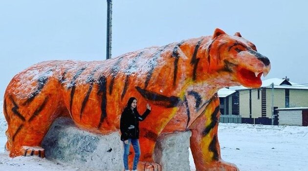 В Зеленодольске слепили снежного тигра длиной 9 метров