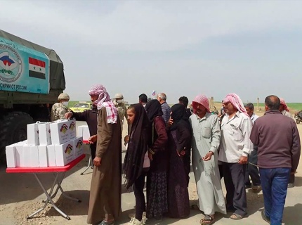 Жители населенных пунктов вдоль трассы М-4 в Сирии получили гумпомощь от российских военных