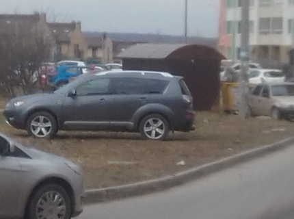 Короли парковки. На газонах, тротуаре и пешеходном переходе