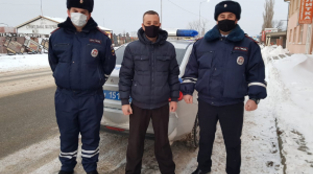 В Краснодарском крае госавтоинспекторы помогли водителю забуксовавшего в снегу автомобиля