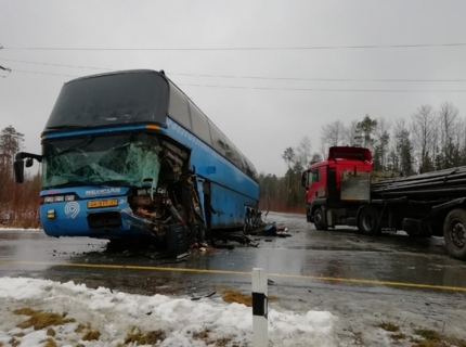 В Тюменской области столкнулись омский пассажирский автобус и фура