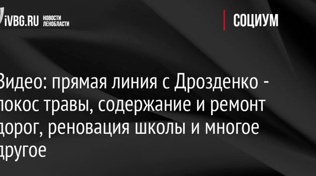 Видео: прямая линия с Дрозденко - покос травы, содержание и ремонт дорог, реновация школы и многое другое
