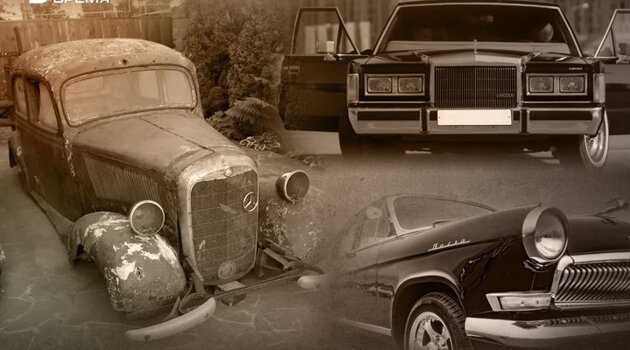 Участник парада 9 Мая, остатки от Mercedes, Lincoln Town Car из "Бригады"