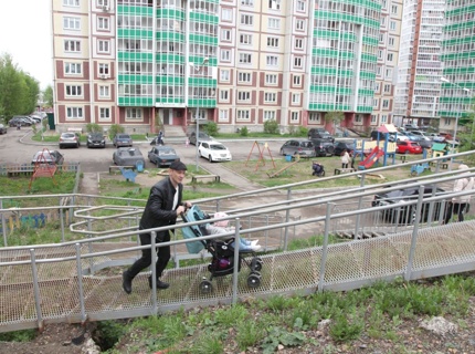 В Красноярске халтурно сделанный пандус "запер" в своих домах целый микрорайон