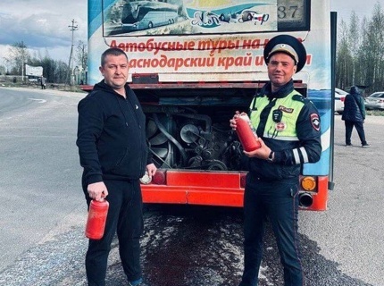 В Вологодской области госавтоинспекторы потушили возгорание маршрутного автобуса