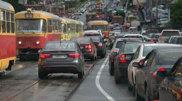 Екатеринбург в понедельник встал в восьмибалльные пробки