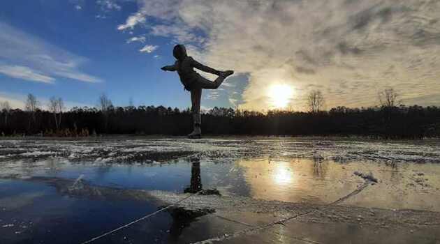 Зачем мне солнце Монако: девушку на коньках заметили на озере в Новосибирске