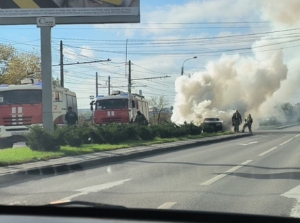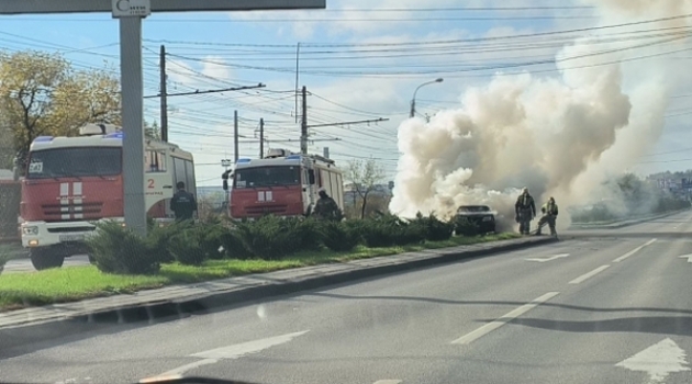 В Волгограде на Первой Продольной в результате ДТП сгорел легковой автомобиль