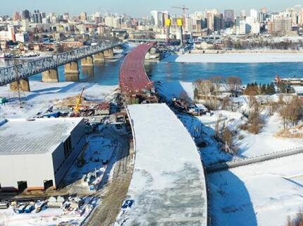 Надвижка пролета автомобильного моста через Обь в Новосибирске завершена