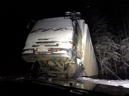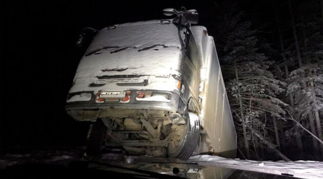 Как дальнобойщик выживает в упавшей в кювет фуре в Хабаровском крае