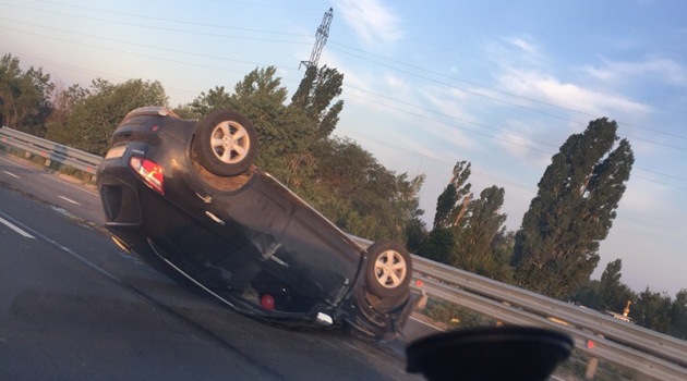В Волгограде на Третьей Продольной перевернулся кроссовер