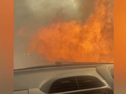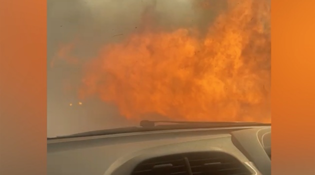 Появилось видео, как машины проезжают сквозь огонь на трассе в Приморье