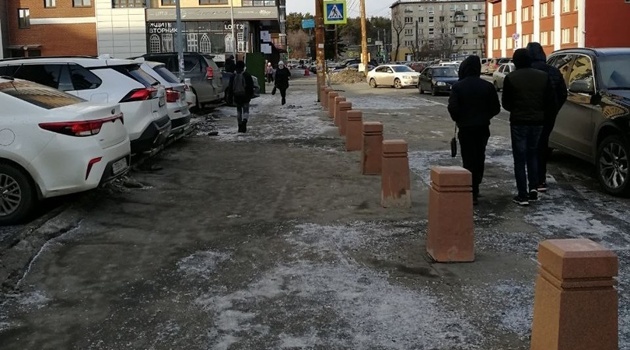 В Челябинске возле бассейна ЮУрГУ наконец установили разделительные столбы