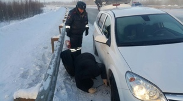 В ХМАО полицейские спасли семью, застрявшую на трассе в 45-градусный мороз