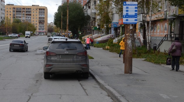 В Екатеринбурге автобусные остановки стали парковками из-за отсутствия обозначающих дорожных знаков