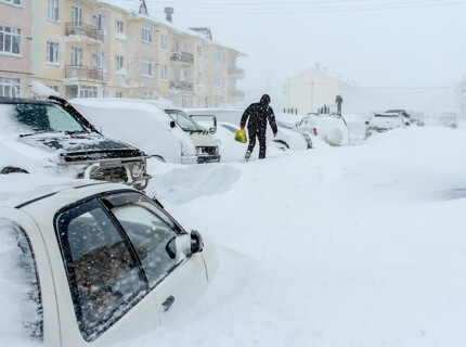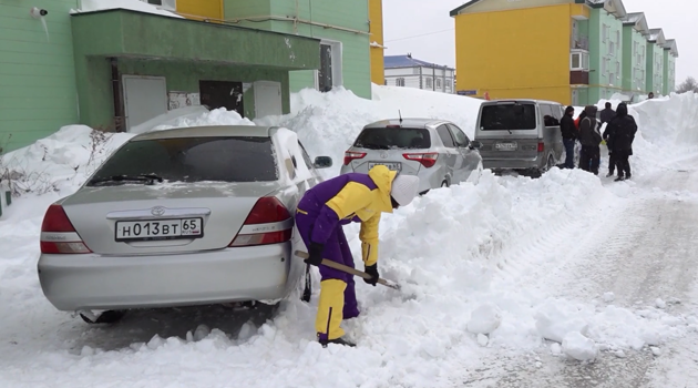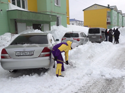 «Сугробы с человеческий рост»: появились кадры метели в Южно-Сахалинске