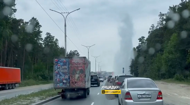Коммунальный фонтан высотой в 10 метров забил на Бердском шоссе
