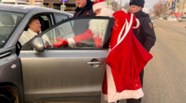 В Самарском регионе сотрудники полиции в рамках Всероссийской акции «Полицейский Дед Мороз» поздравили участников дорожного движения