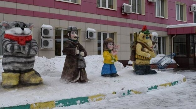 В Казани появились снежные фигуры героев мультфильма "Простоквашино"