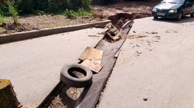 В Советском районе пролом появился во всю ширину проезжей части (ФОТО)