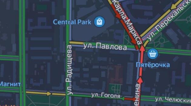 В Курске на ул.К.Маркса и Ленина наблюдаются заторы на дорогах