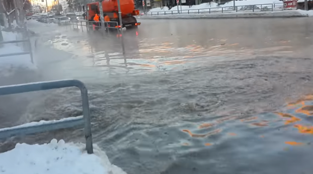 «Течёт ручей, бежит ручей»: появилось видео потопа на пересечении Ново-Садовой и Ленина