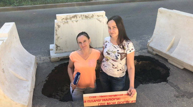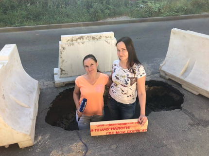 «Ждём реакции властей»: активисты неделю борются с огромным провалом в центре Нижнего Новгорода