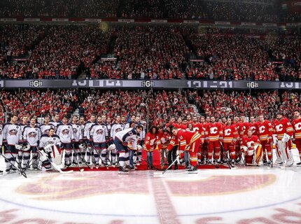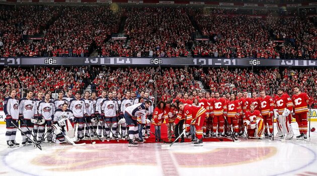 «Калгари» и «Коламбус» почтили память Джонни Годро. Члены семьи сделали символическое вбрасывание