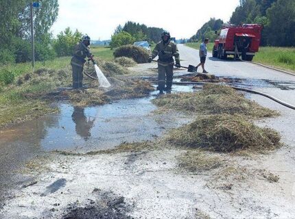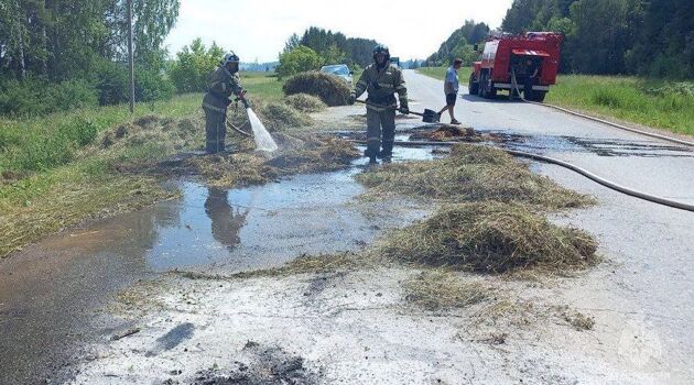 Автоприцеп с сеном загорелся на дороге в Удмуртии