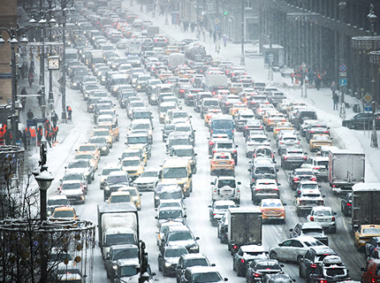Москва и Подмосковье третий день стоят в пробках из-за снегопада