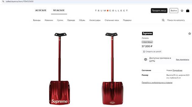 Лопату за 57 тысяч рублей выставили на продажу в ЦУМе