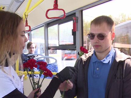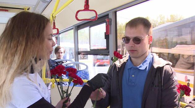 Цветы в придачу к билету: подмосковные перевозчики поздравили пассажиров с Днем труда