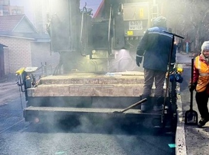 В Липецке на проезде Строителей укладывают верхний слой асфальта