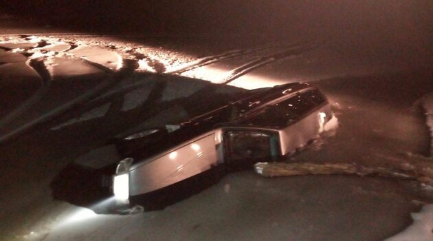 Саратовские полицейские вытащили водителя из машины, провалившейся под лед