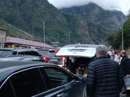 Граница с Грузией: туристы из России везут чемоданы на велосипедах
