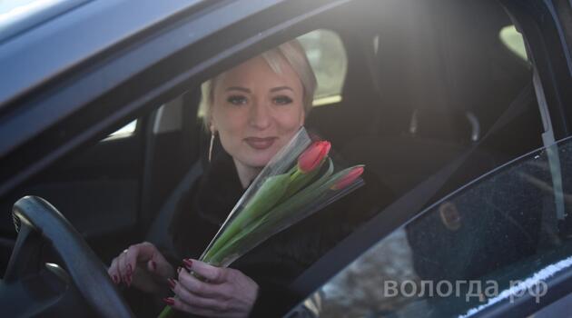 Сотрудники ГИБДД поздравили автоледи в Вологде с наступающим 8 Марта