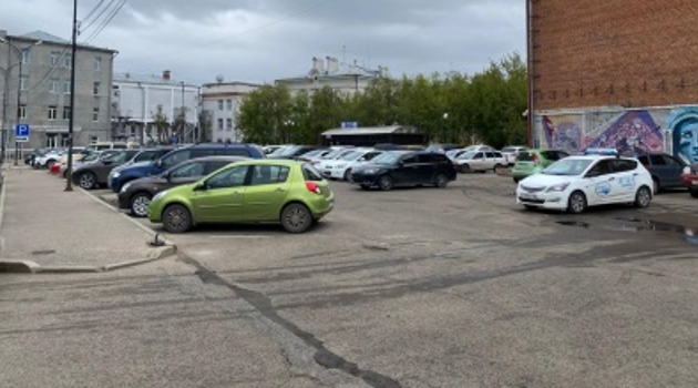 В Иркутске парковку у здания по улице Ленина, 14Б оборудуют шлагбаумами
