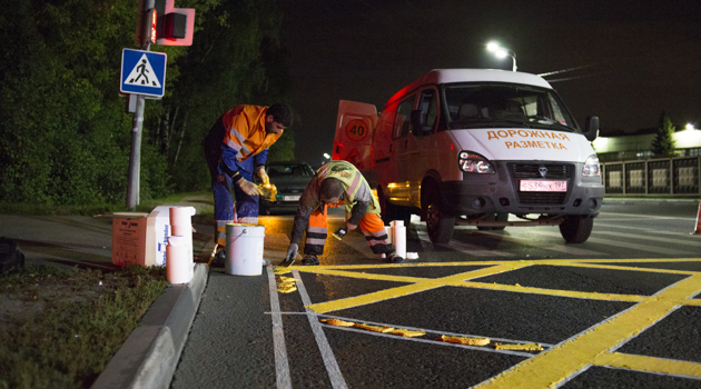 Разметку из термопластика начали наносить на центральные улицы Балашихи
