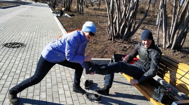 На Михайловской набережной сняли социальную рекламу о быстрых мотоциклистах