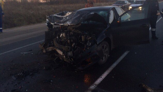 На Окружной столкнулись два автомобиля. Очевидцы сообщают, что погиб пассажир. ДТП произошло в результате выезда одного из водителей на встречную полосу. По неподтверждённым данным он был пьян. фото со страницы «Сообщества автомобилистов Калининграда и области» в социальной сети