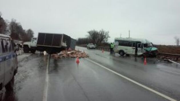 На трассе Брянск – Гомель под Брянском столкнулись микроавтобус "Мерседес" и грузовик ГАЗ. Пострадали шесть человек.
