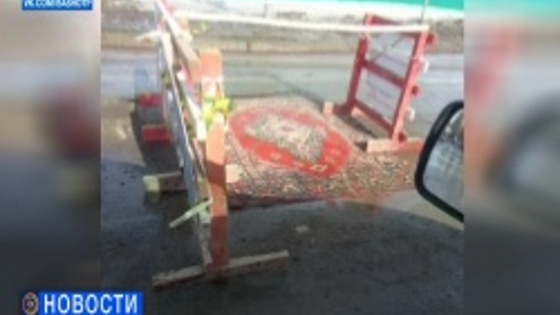 Фото в социальные сети выложили местные жители. Палас положили прямо посреди проезжей части, а вокруг выставили ограждение. Такое ноу-хау от дорожников не осталось без оценки. В комментариях автовладельцы предположили, что это парковочное место сказочного героя Аладдина, кто-то пишет, что в этом году тендер на ямочный ремонт выиграл завод по производству ковров, а в следующем дыры будут латать уже ламинатом или линолеумом.