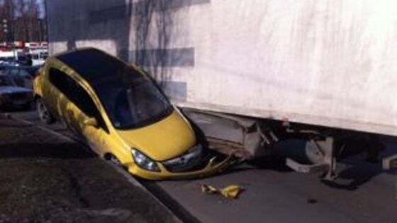 На Остужевском кольце в Воронеже прицеп фуры смял Opel