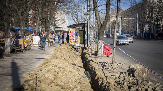 В самом сердце Кишинева, как на войне: ямы, траншеи и техника