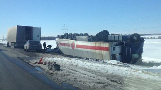 На трассе М-7 в Башкирии перевернулась фура c грузом куриных яиц. Об этом сообщают очевидцы в социальных сетях.
