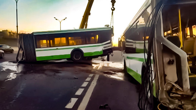 ДТП произошло ранним утром в четверг на Московской кольцевой автодороге. Сообщается, что в аварии никто не пострадал – в автобусе не было пассажиров, так как только вышел на маршрут. Судя по первым кадрам с места происшествия, опубликованным в Сети, грузовик протаранил автобус с такой силой, что последний развалился на две половины, разлетевшиеся на расстояние в несколько десятков метров. Подписывайтесь на нас в Facebook и Вконтакте!