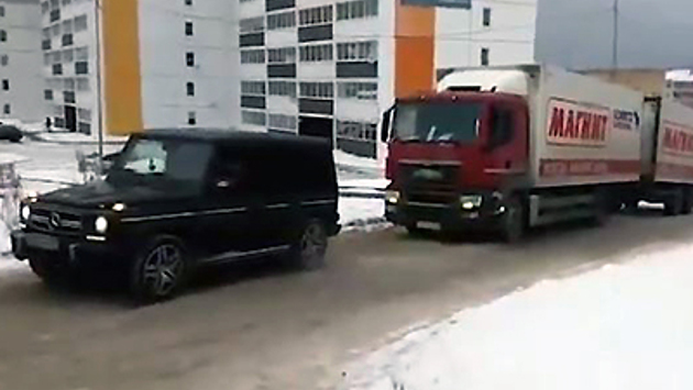 В Краснодаре Mercedes Gelandewagen отбуксировал грузовик «Магнит» с двумя прицепами. Похоже, водители южного региона не ожидали снега на дорогах города, поэтому грузовик MAN и не смог одолеть подъем в горку. Тогда ему на помощь пришел водитель легендарного немецкого внедорожника, который протащил его через непростой участок. Читайте статью на QutoЧитайте также:Видео: Принципиальный полисмен на велосипеде догнал LamborghiniBMW объявляет новые цены на модельный ряд с 1 января 2018 годаВидео: Калифорнийцы научили багги летать