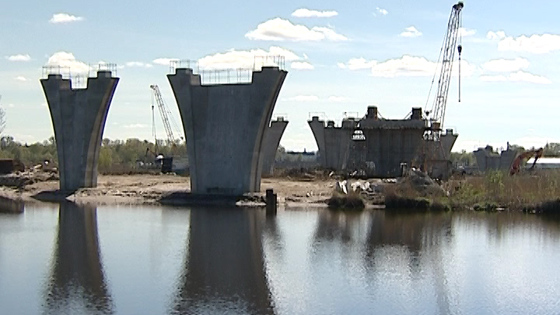 Строительство Восточной эстакады в Калининграде выходит на новый этап. Здесь идет надвижка пролетов моста. Конструкцию весом 750 тонн толкают на опоры при помощи гидравлических домкратов со скоростью 4 метра в час. На мосту через реку новая Преголя, начался монтаж пролетных строений. Подрядной организации нужно установить на опорах 6 железных конструкций, весь каждой 750 тонн. Работы будут вестись до конца года. Константин Морозов, корреспондент: — Пролетную конструкцию весом 750 тонн сейчас двигают при помощи гидравлического домкрата со скоростью 4 метра в час. Так что она окажется на второй опоре Восточной эстакады только завтра. Несущую часть путепровода, собирают по принципу конструктора. Сначала устанавливают один блок, к нему крепят следующий, следом по принципу вагонов паровоза, двигают каждым новым вперед. Так, что эта пролетная часть будет началом моста с противоположного берега. Такая технология, уже не раз применялась в нашем регионе. Сергей Афанасьев, начальник строительства: — Это сооружение уникально длинной руслового пролета, то есть это с одной и другой стороны реки стоят по одной опоре, и расстояние между двух опор равняется 99 метров, таких пролетов, таких длин в Калининградской области еще не было. Работы на объекте идут круглосуточно. Сейчас есть некоторые задержки с поставками металлоконструкций. К концу года все пролетные строения планируются установить на мост, и частично забетонировать. На Острове Октябрьский параллельно видется подготовка инфраструктуры. Александр Рольбинов, врио заместителя председателя областного правительства: — В продолжение Восточной эстакады, она объединяет с дорожной сетью на Острове со съездами с эстакадного моста работы идут полным ходом, я думаю, к концу года раньше срока мы завершим выполнение этих работ. Что касается второй очереди Восточной эстакады, идущей от Московского проспекта до пересечения улиц Орудийной и Гагарина. Правительство Калининградской области на этом участке сейчас ведет изъятие земель. Третьего этапа от Острова Октябрьский до Дзержинского сейчас нет даже в проекте. Елена Дятлова, врио министра развития инфраструктуры областного правительства: — Мы понимаем, что необходимо наследие после чемпионата мира по футболу и Восточная эстакада, как транспортная артерия, сможет заработать, только когда будет спроектирована третья очередь, чем сегодня планирует заняться город Калининград. По новой транспортной развязке уже в следующем году болельщики, приехавшие на мировое первенство, поедут к арене «Калининград». Константин Морозов, Юрий Твердюк